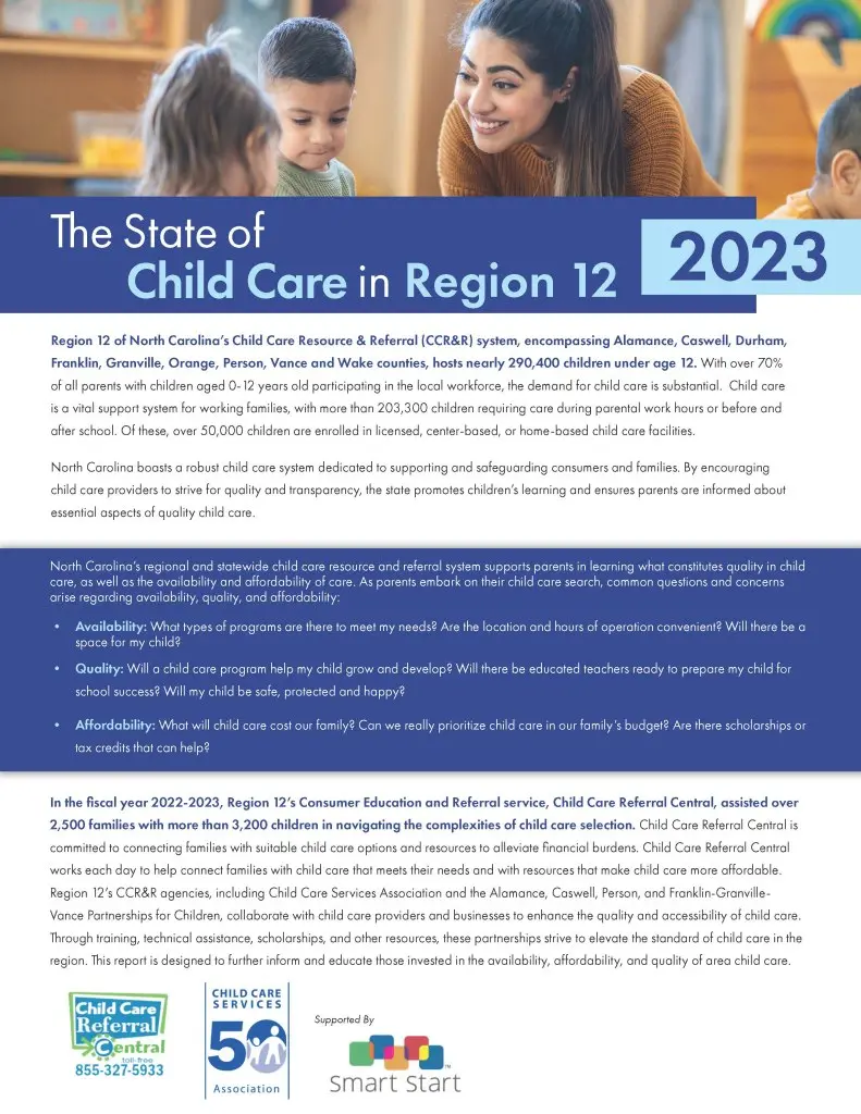 Early Years works with child care providers and businesses to improve the quality of available child care by offering training, technical assistance, educational scholarships, nutrition resources, salary supplements and more. These reports are designed to further inform and educate all those invested in the availability, affordability and quality of area child care.